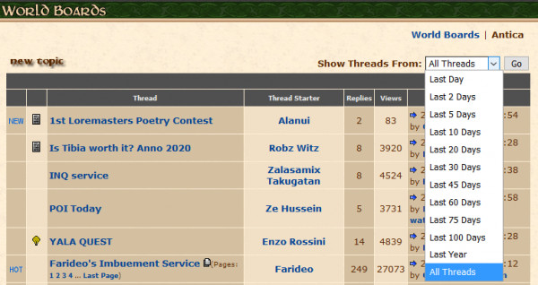 To use the forum, you had to log in on the website with your Tibia name and password. Annoyingly you had to enter your password every time you wanted to do anything on the forum as there was no accounts or way to save your credentials. Though a centralized place to discuss the game would remain an important fixture of the site, many still chose to use the popular World of Tibia (WoT). One of the reasons for this was that players who broke the game's rules on the official forum, as they would be nicknamed by players, would also result in a game ban.