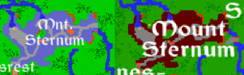 Finally, the mini map received a small change in how it showed mountains. Previously a mountainous area had been denoted as a light blue color, but now the map would show mountains as a maroon color. You would need to remap the area for the change to take effect which was annoying. Also noted is that the bridge which connected the west side of upper Thais to the north of Mt. Sternum was no longer there.
