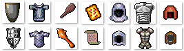 Many of Tibia's items graphically changed with the update of new sprites but only a few items were added or changed this update. CIP added the Carlin Sword which was a 15 attack, 13 defense basic weapon that looked really close to the Short Sword. Small Stones were also added which could only be found as decoration on the map surface. This stone, which had 20 attack, could be thrown like the spear and would later become the weapon of choice for paladin to train with due to their much lower weight. Equipment was largely left alone with one change to the defense of the Dragon Shield which decreased from 35 defense to 32.