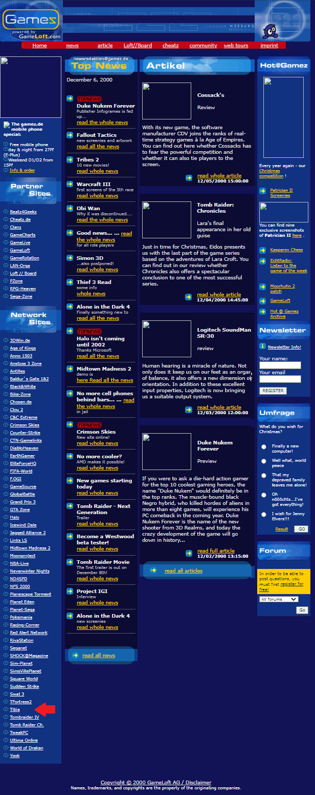 With their studies coming to an end their first step was to replace the university server with one of their own, and since Tibia was not able to generate any money, they settled on using Gamez.de. Their agreement with them allowed the use Gamez.de's servers in exchange for advertisements on Tibia's website. This agreement would work out only for a few months. Perhaps both CIP and Gamez.de underestimated how fast Tibia would grow.
