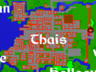 Thais received a few changes as well with the east wall now pushed out and straightened, giving the city more room to expand. A new two-story bank also opened in Thais between the sorc guild and the barracks, which was staffed by NPC Suzy. The placement of the bank was problematic because PKs liked to hang around in the area and the bank with its single door was a very easy place to get trapped. All the other new bank locations were more forgiving. The empty music store now had staff as NPC Quero moved in and would sell players many of the instruments available in Tibia, which was great for roleplayers. The empty jeweler store was now open with NPC Hanna offering small gems and other trinkets. At this point you could trade the new stackable small diamonds, rubies, emeralds, sapphires, and amethysts for the same price you bought them at. The diamond was the best of the group, as you could sell and buy for 300gp each, making it an excellent store of wealth as players were still relying on gold and now the new platinum coins. Making rare purchases by coin required many backpacks of gold coins. I once conducted a deal that cost 2.5 backpacks of platinum coins (500k) which was very cumbersome to exchange.