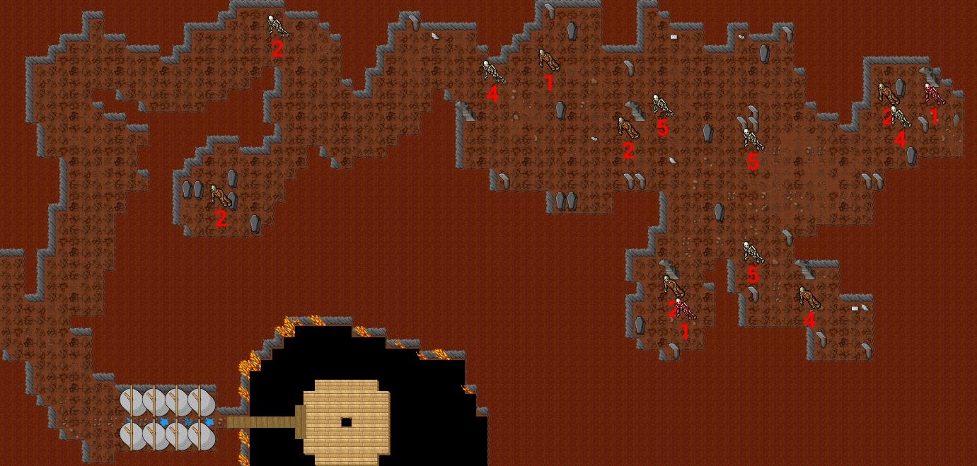Navigating west took you to a split almost right away which led north. This was a huge undead cave filled with Skeletons, Ghouls, and a couple of Demon Skeletons which were dangerous. The large quantities of monsters were unusual, and it was secluded enough that hunting here was worthwhile. However, the incredibly long walk out sucked which often meant only the most dedicated hunted the spawn.
