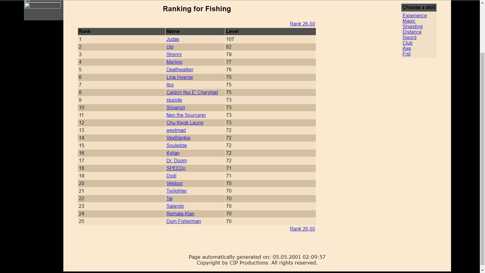 This update also introduced a new and important rule change, stating officially that Macro use was forbidden. Players had long used repetition software to take care of Tibia's mundane tasks or to provide themselves with an edge such as accurate rune aiming. Now anyone employing cheats would face banishment or deletion. Fishing macro use was a major problem before, and the most obvious cheat for players to see as offenders appears with unrealistic fishing skills in the high scores. Now with the rule eliminating macros, these players would be punished more often as it was easier to prove. Others such as rune aiming where much more challenging to detect and punishment relied on the reputation of the GM or player who reported the crime. Many times, these bans would be reversed due to lack of conclusive evidence.
