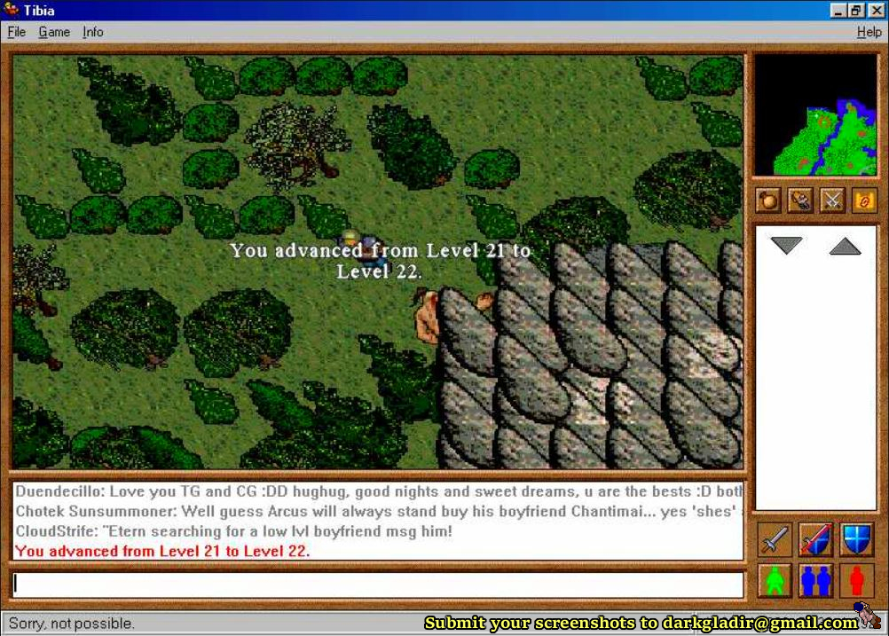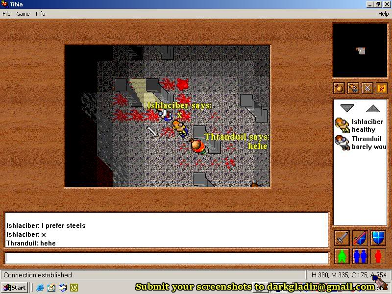 Heading north would take you to a cave which was a large three level Troll dungeon. There was a junk heap inside which spawned the rare Iron Piece for your Warlord Sword fund and I think you could also find a small gem, maybe a Small Amethyst here. There were many ways to get to the floors below with the lower most floors being single rooms with multiple Trolls inside. This dungeon was popular for low leveled players as it offered a huge spawn which was relative safety from anything dangerous. Unfortunately, it also became a popular spot for PKing once Premium became easier to get.