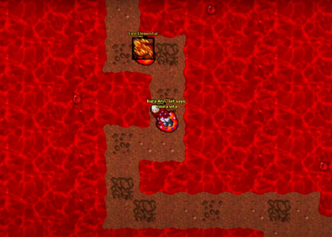Folda by far received the largest update in the area with a massive increase to the underground dungeon. CIP had listened to players laments about the lack of hunting spots on the islands, and with this update they would no longer have cause to complain as the huge dungeon now spanned three floors which offered many spots for multiple players to hunt. On its lowest level was a lava area which had a single path walkway where the new Fire Elemental spawned. The place was a huge maze which had tons of interesting rooms and a large variety of monsters to hunt. Many Orcs and Minos could be found here as well as plenty of basic creatures and some ice area exclusive monsters like the Frost Troll. There were several pickable spots which led to a hidden area on the floor below so there was plenty to discover.