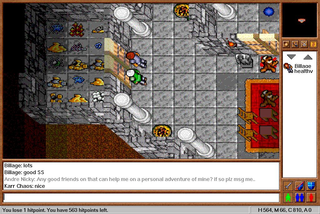 To the far northeast of the island was a new massive castle that sprung up called Alawar's castle. This castle had two large levels which turned into a small tower that rose two more floors. A staircase leading down led into a huge room with different kinds of fields on the floor and a room to the north which had magic walls blocking the way. Under a firefield to the far west was a switch which would drop the magic walls if pulled and disappear itself. This would allow access to the north room which had a teleport. Entering the blue portal led to a large vault room which had "treasures" in locked rooms that even a Rookstayer would turn their nose up at. You would appear behind two closed doors which had two chests for you to loot. Inside them was three White Pearls and a Broadsword. Outside the room was some Minos and a Mino Mage which could only attack you if you opened the door which was locked. Heading back into the teleporter transported you to the top of the castle on the roof so you could make your escape.
