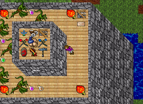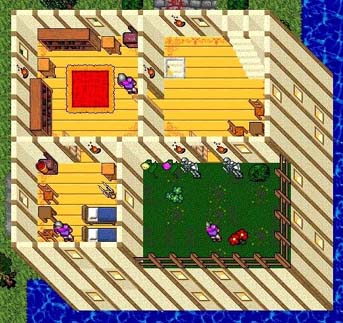 The strange island by Carlin which might have been an early GM island was now gone and a new GM island appeared just south of Carlin. Only GMs on their tool character could access the place which had a large two-story house with a huge library on the second floor. To access it a GM had to use the command Alani "home" which would take them to the island. Hidden to the west of the main building was a hole which dropped you into a secret torture dungeon. There was switch which might have created an energy field on the chair like an electric chair, but this was only just a rumor. Further rumor states that Guido was seen sneaking into this dungeon late at night and the following day several deletions were announced. Jeremy the well-known PK was TPed here once by Guido and killed, but he is the only player I know of to reach the island, even if it was briefly.